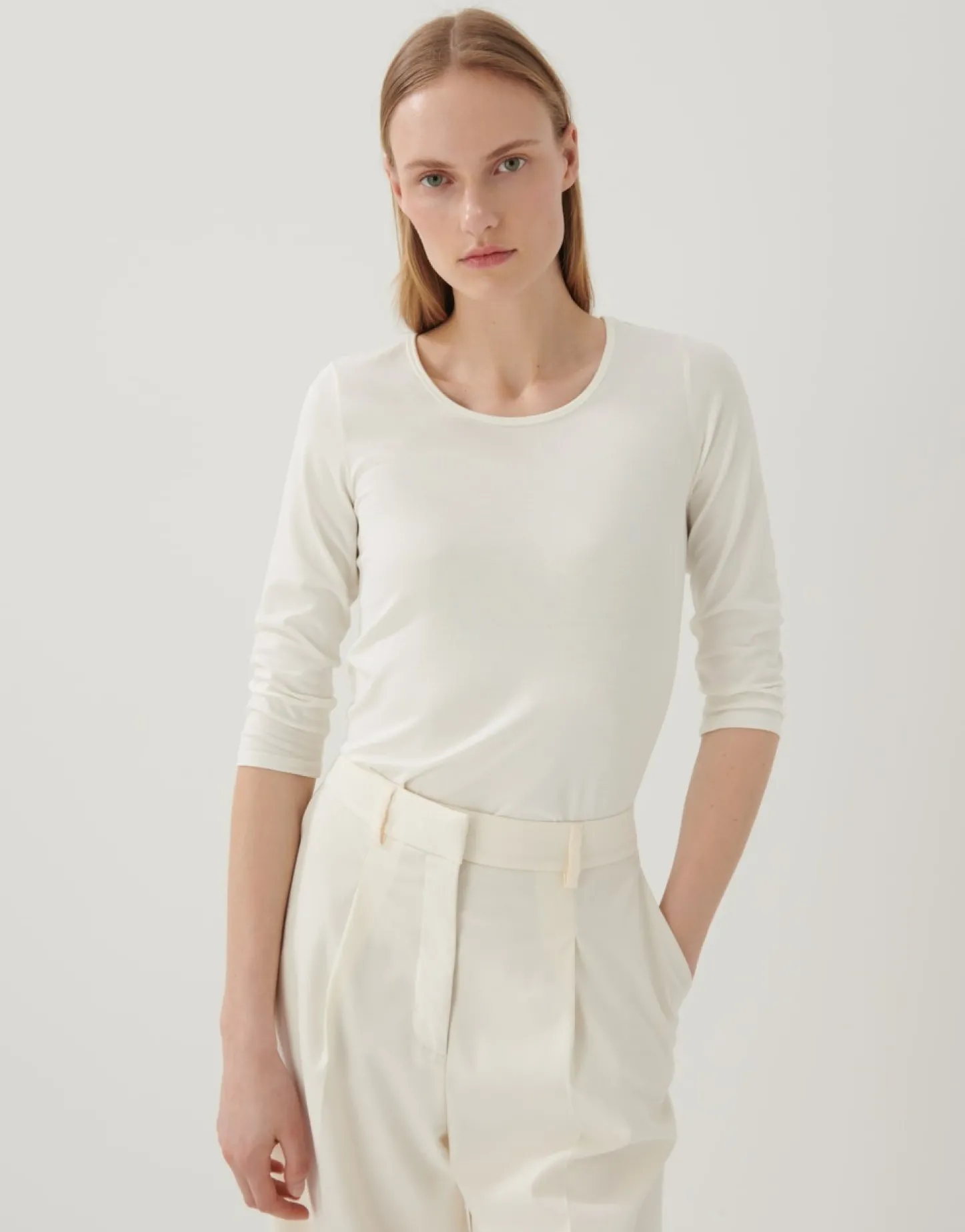 Een Veelzijdige Must-Have: Het Eenvoudige T-Shirt Dient Als Praktische Basis Voor Een Modieuze En Ontspannen Look. De 3/4 Lengte Flatteert De Armen En Maakt Het Veelzijdig Te Combineren. De Lange Overlocknaad Op De Rug Zorgt Voor De Visuele Highligh…
