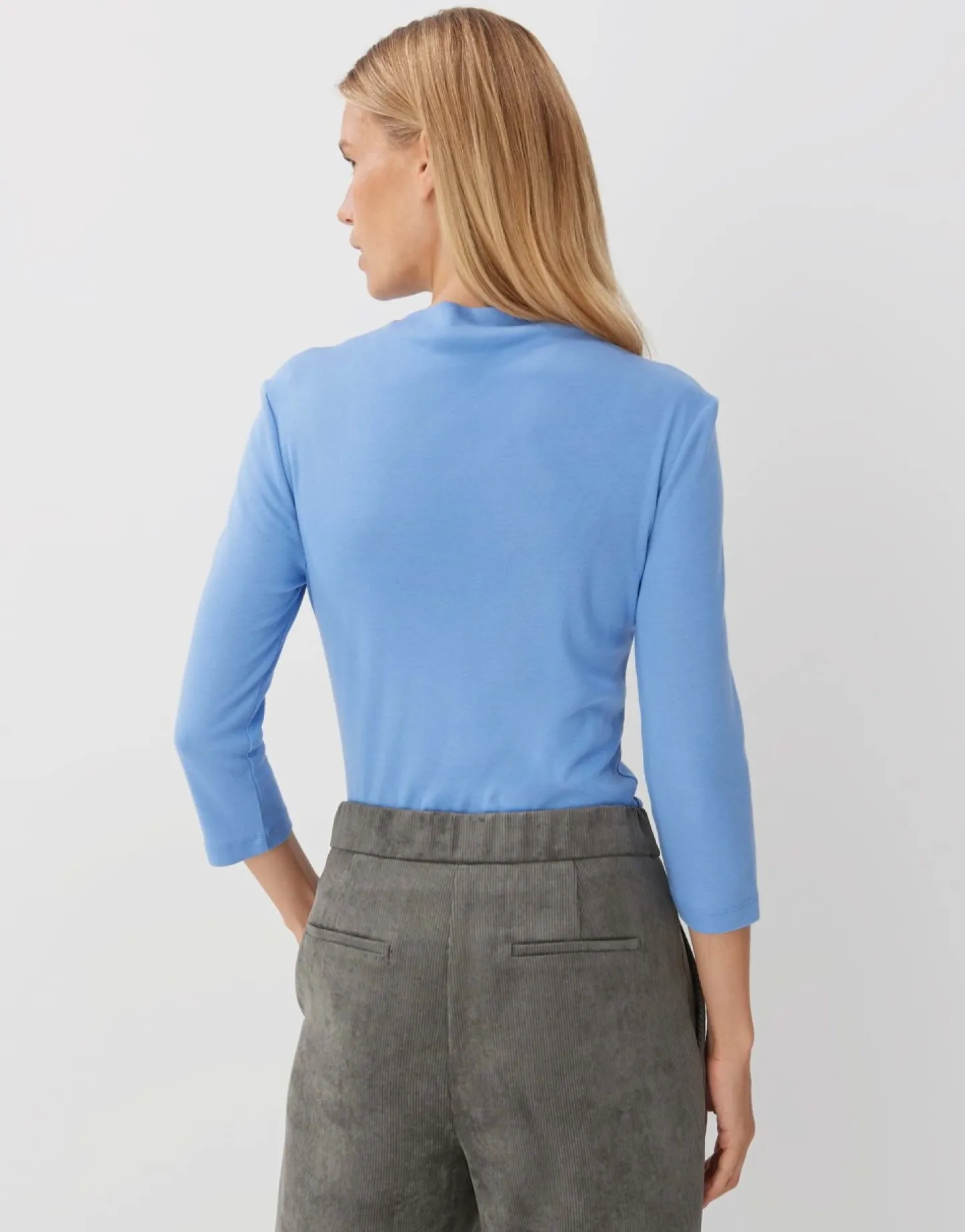 Het T-Shirt Van Duurzame Bci-Katoenmix Overtuigt Met De Voordelen Van Een Basic. Het Slanke Silhouet Wordt Aangevuld Door De Verkorte Mouwen En Een Kleine Opstaande Kraag. Een Lengtenaad Aan De Voorkant Breekt De Pure Look.