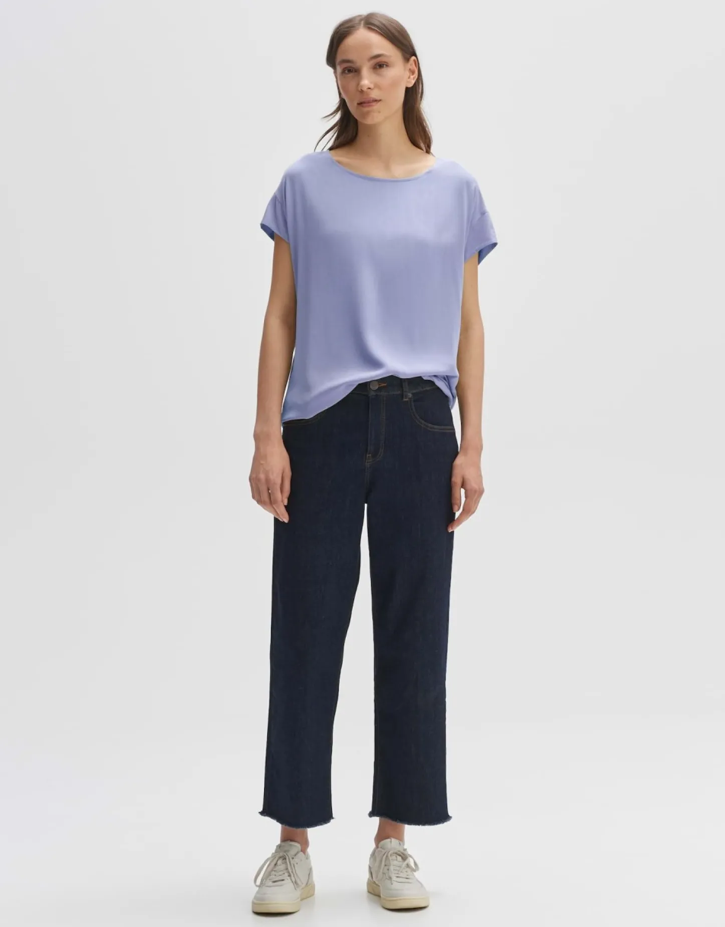 Dit T-Shirt Van Een Materiaalmix Van Ecovero™ Viscose Voelt Bijzonder Zacht Aan Op De Huid. Op De Rug Is Een Diep Schouderstuk Aangebracht. De Zoom Is Afgerond En Kan Los Over Een Broek Of Ingestopt Worden Gedragen.