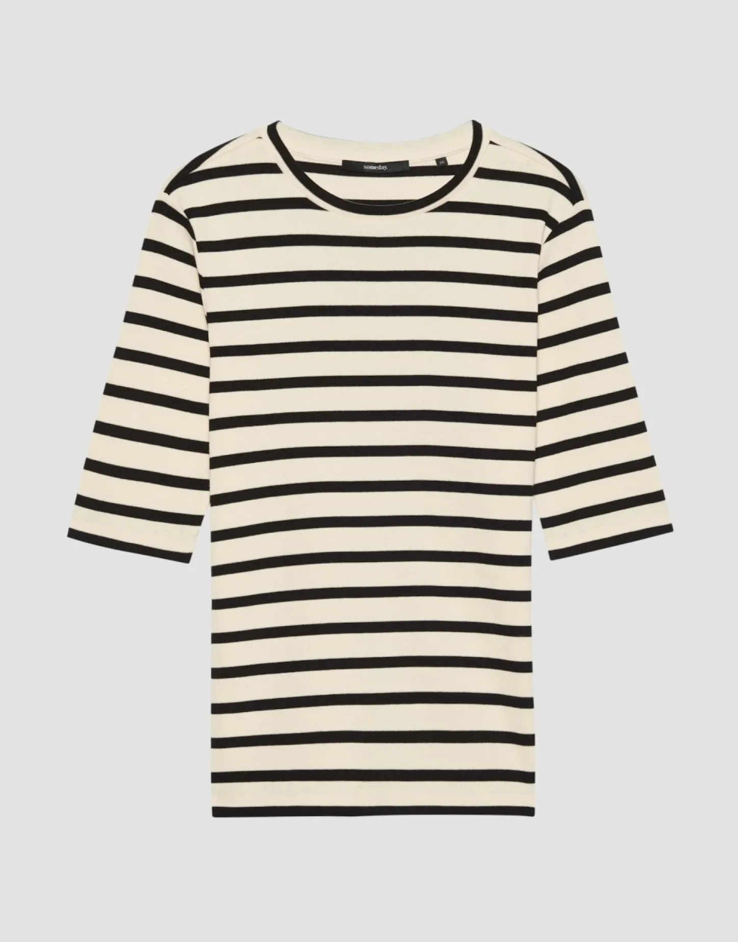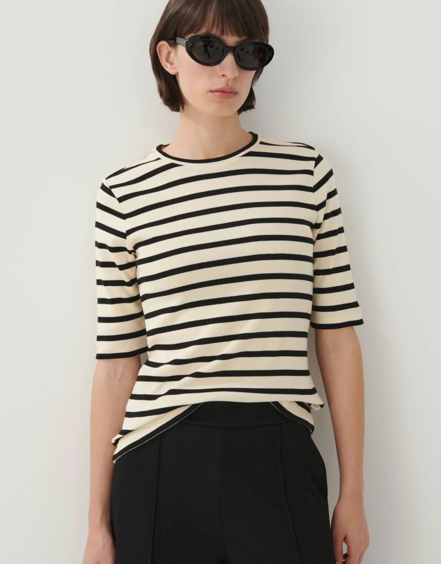 Dit Sweatshirt Is Gemaakt Van Eersteklas Bci-Katoen En Heeft Een Flatterende Halve Mouw Die Perfect Is Voor De Zomer En Als Overgangskleding. Het Klassieke Streeppatroon Wordt Gespeeld Over Een Nauwsluitend Silhouet.