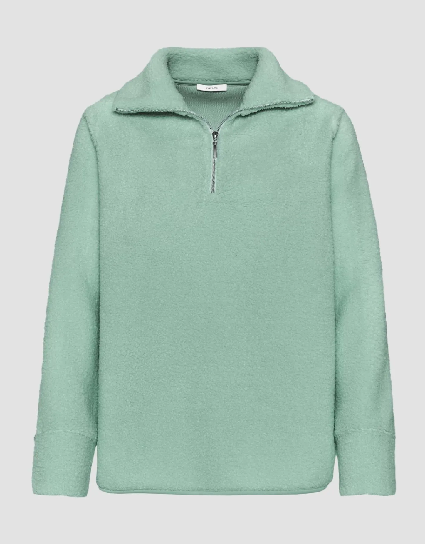Deze Trui, Gemaakt Van Een Behaaglijke Teddystof, Heeft Een Modieus Detail: Een Troyer Kraag Met Een Metalen Rits. Het Lange Silhouet Is Afgewerkt Met Een Afgeronde Zoom.