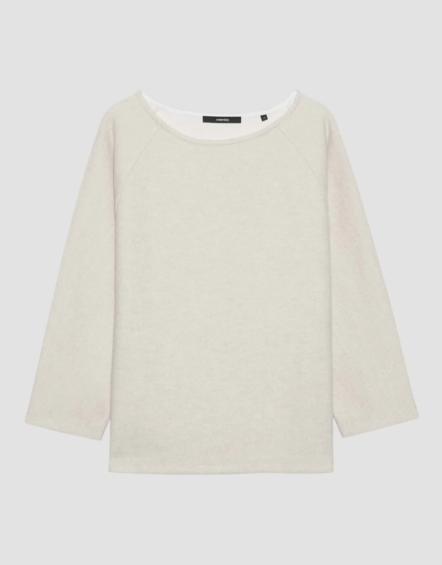 De Trui Is Gemaakt Van Een Viscosemix En Heeft Door Het Geborstelde Oppervlak Een Knus Flanellen Karakter. De Losse Pasvorm Combineert Een Raglanmouw Met Een Verkorte Vleermuismouw.