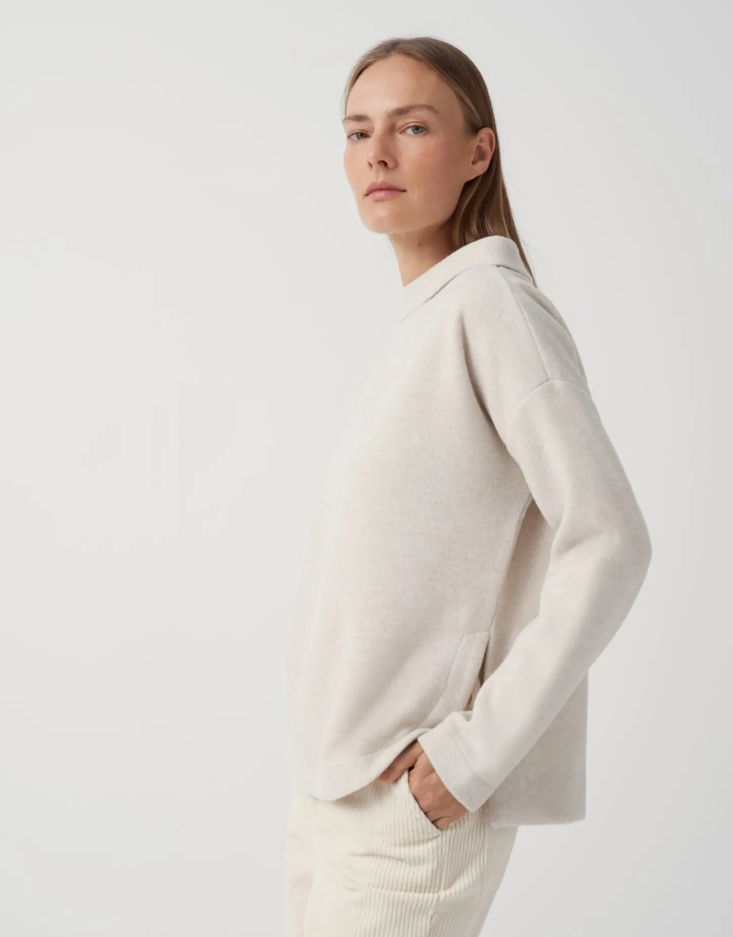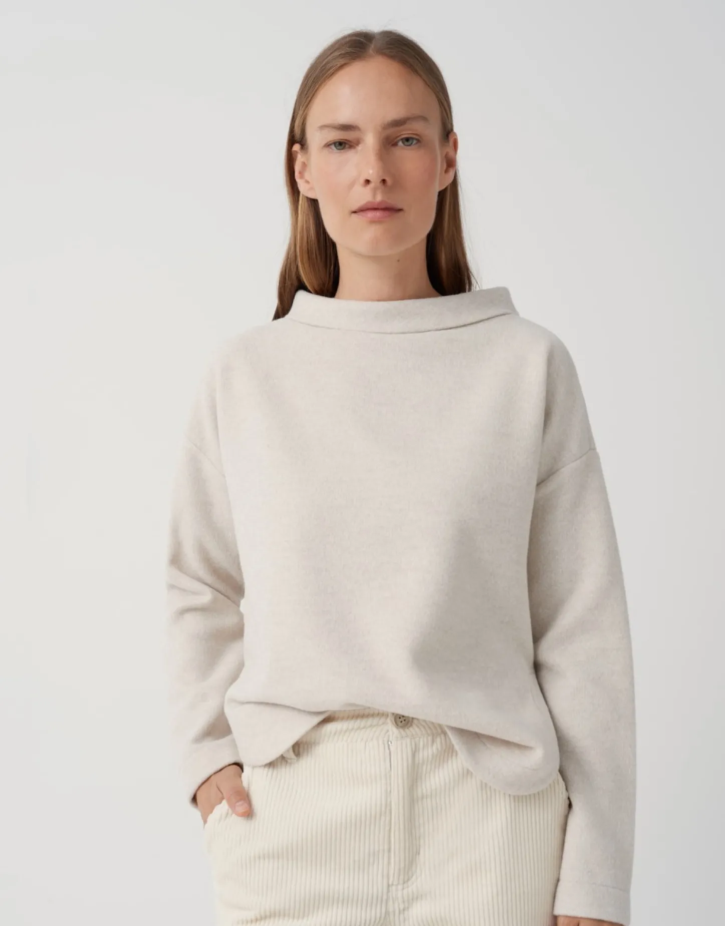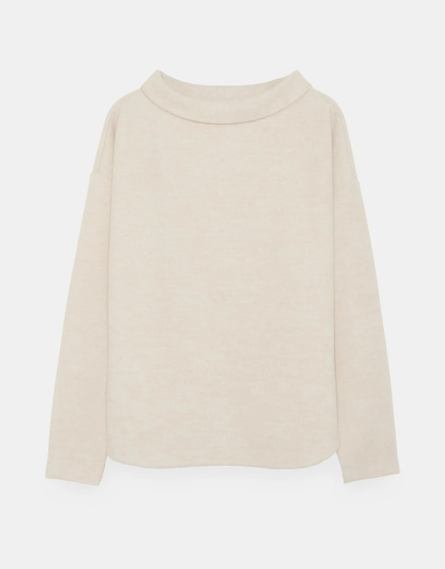 De Trui Is Gemaakt Van Een Zachte Viscosemix En Het Geborstelde Oppervlak Geeft Hem Een Mooi Gevoel. De Speciale Afwerking Van De Kraag In De Vorm Van Een Van De Hals Weggevouwen Kraag Zorgt Voor Een Elegant Accent.